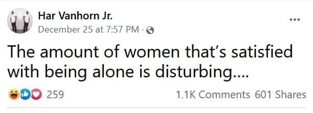 Number one: it’s easy to be single in 2021 considering the state of gender relations in this culture. The men I’ve come across are so dang angry and filled with bile and unrealistic expectations that’s it’s a turnoff. I’ve seen men with missing, yellowing teeth who think they are entitled to the most beautiful woman in the world. And in addition to being highly unattractive, they have the audacity to have rigid gender standards for women.